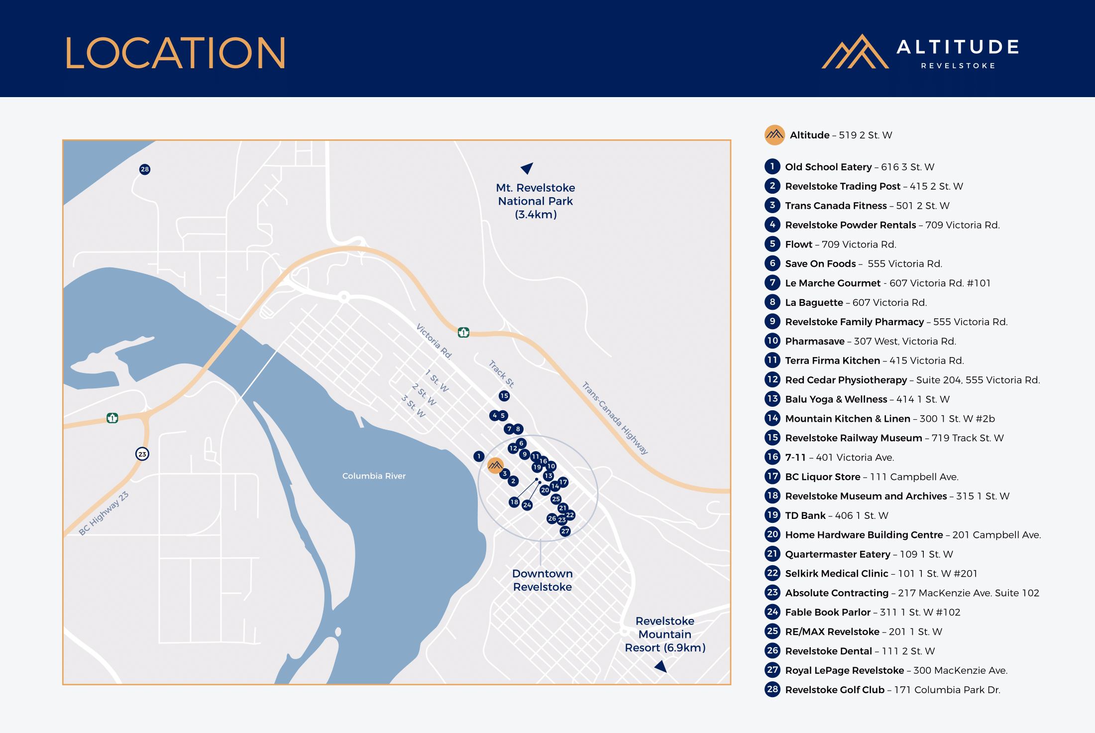 One Bedroom & Two Bedroom + Den, Two-Level Condos. Close proximity to cafes, restaurants, pubs, grocery stores, pharmacies and just minutes from Mt. Revelstoke National Park and Revelstoke Mountain Resort.